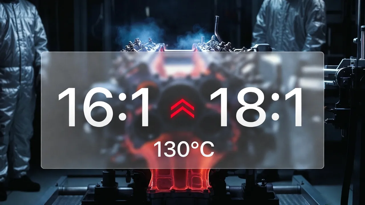 The 2026 technical regulations set the geometric compression ratio limit at 16:1. This was deliberately lower than the previous 18:1 limit — one of the FIA's stated goals for the new power unit era was to attract new manufacturers by reducing the metallurgical complexity of building a competitive engine.[1]
